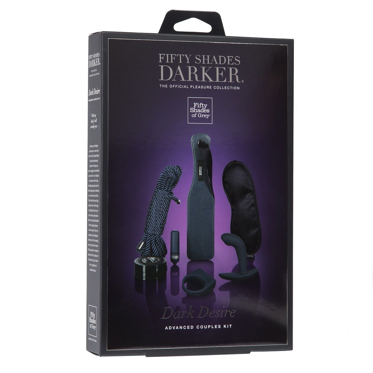 Официальная серия товаров для взрослых «На 50 оттенков темнее», одобренная лично Э.Л. Джеймс - автором нашумевшей трилогии «50 оттенков серого». Приоткрывает двери самых изысканных удовольствий с помощью роскошной лимитированной коллекции кожаных девайсов высочайшего исполнения. Такое качество в каждой детали, начиная от упаковки в виде бархатного конверта и заканчивая кожей уникальной выделки, не может быть доступно всем. Коллекция строго лимитирована. У нее как и у каждого наслаждения есть свое время… Набор для игр. Идеально подойдет для вашего вечера. Зафиксировать руки/ноги вашему партнеру веревкой, закрыть глаза маской, а потом... Стимуляция и возбуждение сосков при помощи вибропули, легкая порка пэддлом, анальная игра или продолжительный и чувственный любовный акт вместе с виброкольцом. Только вам решать, что делать и в какой последовательности. Для большего удовольствия и комфорта рекомендуем приобрести смазку на водной основе. В комплекте: верёвка, скотч, эрекционное виброкольцо, вибропуля, маска на глаза, пэддл, анальный плаг. Батарейки в комплекте.