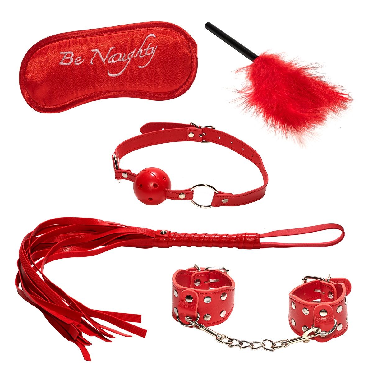 Ценителям ролевых игр понравится этот необычный набор БДСМ, который добавит пикантности и разнообразит ваши семейные игры. В набор БДСМ входят наручники с надежным фиксатором из мягкой кожи, которая не травмирует и не причиняет неприятных ощущений. В комплекте присутствует плетка, безопасный кляп с отверстиями для вентиляции воздуха, мягкая маска для лица из атласа, небольшой стек с пуховкой. Вся продукция изготовлена для интимных фантазий. Освежите свои отношения, удивив партнера подарком в виде набора BDSM. В комплекте: маска, кляп-шарик, пуховка, наручники, плеть.