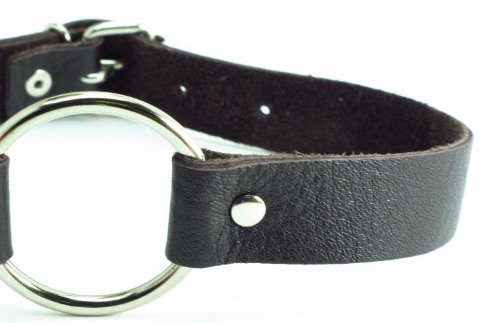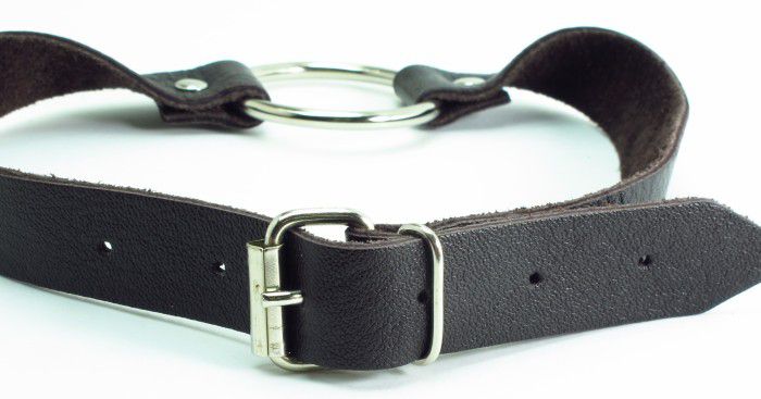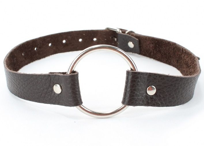Коричневый кожаный кляп с металлическим кольцом БДСМ арсенал 60002ars