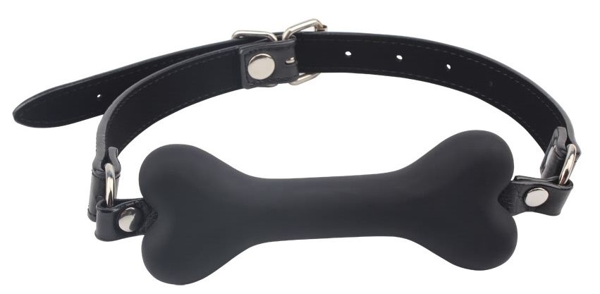Черный силиконовый кляп-косточка на регулируемом ремешке Doggie Bone Bit Gag. Ширина - 4,6 см.