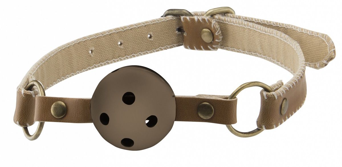 Коричневый пластиковый кляп-шар на кожаных ремешках