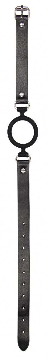 Чёрный кляп-кольцо с кожаными ремешками Shots Media BV Silicone Ring Gag with Leather Straps OU463BLK