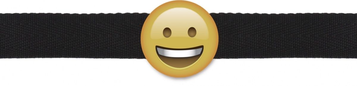 Желтый шар с веселым смайликом и черными лентами с удобной регулировкой размера. Ширина лент - 2,5 см. Диаметр кляпа - 4 см.