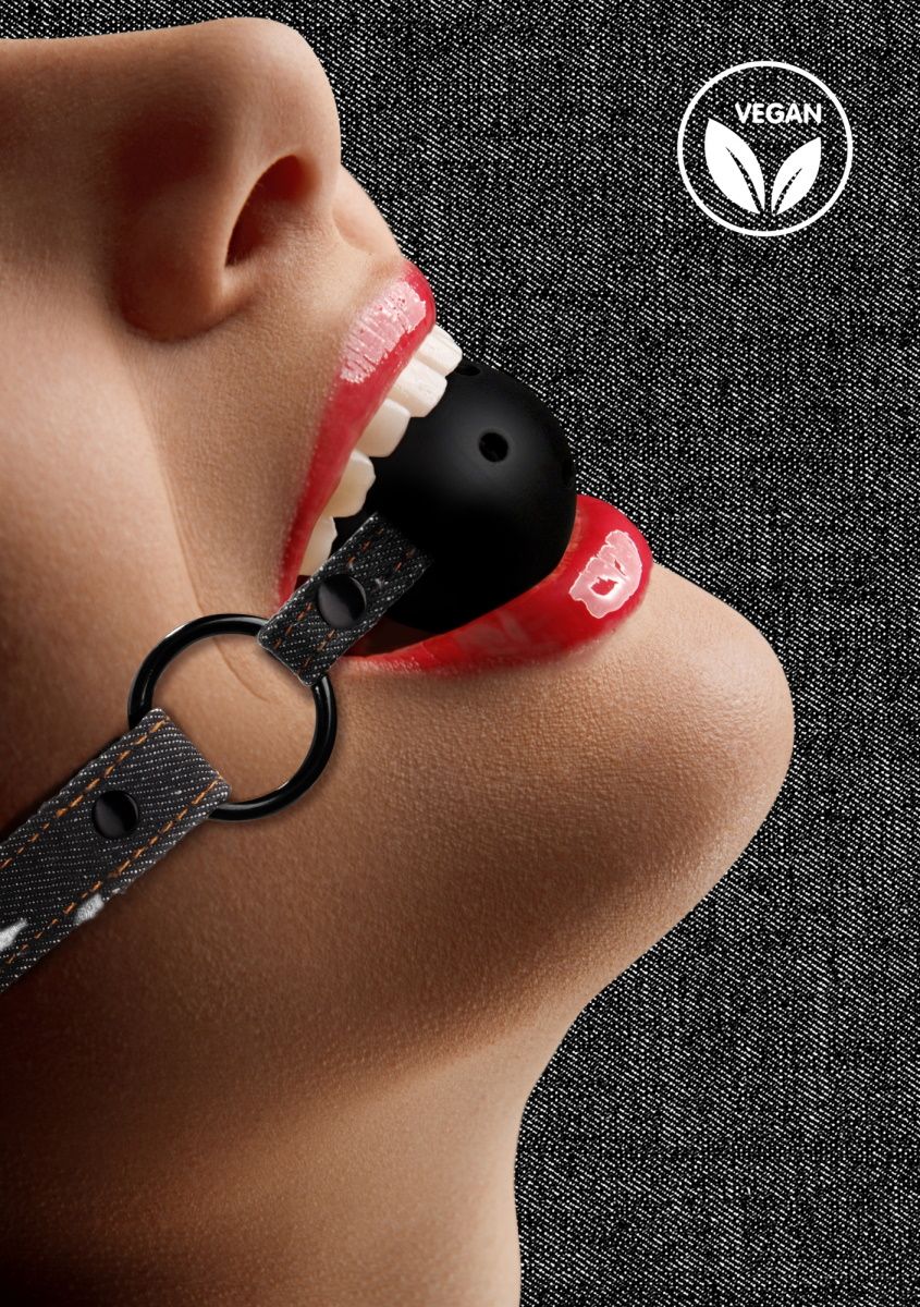 Кляп-шарик With Roughend Denim Straps – приспособление для лишения партнёра возможности издавать громкие звуки и произносить членораздельные слова. Благодаря специальным отверстиям, кляп обеспечивает свободное дыхание во время сессии. Фиксация осуществляется с помощью ремешка с классической пряжкой. Имеется 10 отверстий, за счет чего можно идеально подобрать требуемый размер. Сам шарик выполнен из прочного и гигиеничного пластика, а ремешки из высококачественной джинсовой ткани. Два соединительных кольца, заклепки и пряжка изготовлены из металла. Просто поместите шарик в рот и зафиксируйте ремешками с классической пряжкой с помощью одного из десяти отверстий на ремешке.