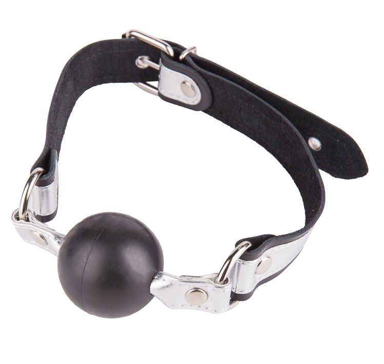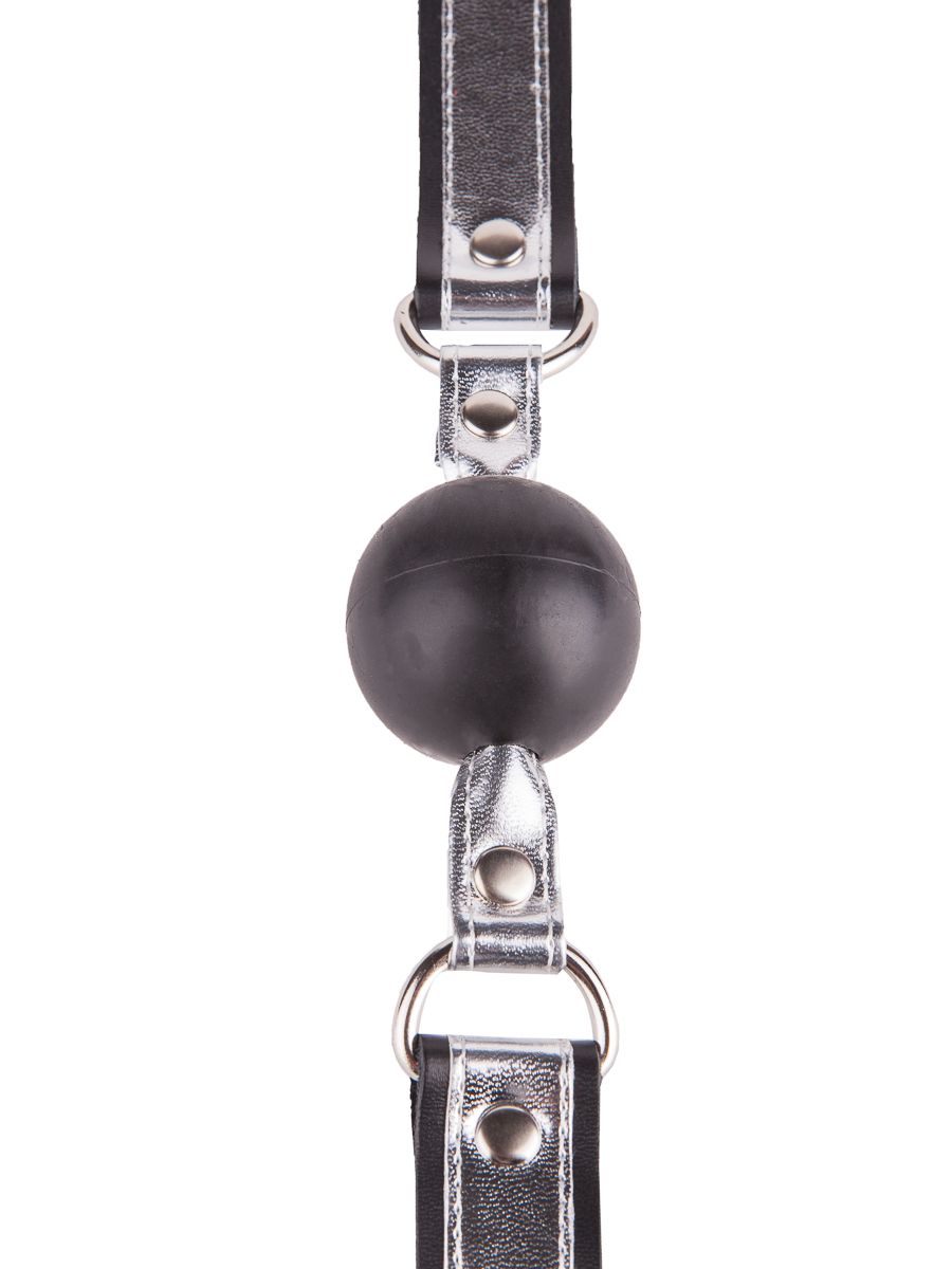 Кляп – это девайс, который позволит сделать секс-партнёра безмолвным и покорным. Упругая сферическая часть изготовлена из современного материала ТЭП, который не способен нанести вред зубам и прост в уходе, достаточно промыть теплой водой с мыльным раствором и просушить. Особое внимание заслуживают ремешки, между которыми закреплён кляп-шар, они изготовлены из натуральной высококачественной кожи чёрного цвета и декорированы дополнительными накладками под серебро. Роскошный кляп непременно станет украшением Вашего тела. Металлическая фурнитура имеет никелевое покрытие. Зафиксировать девайс на теле и отрегулировать размер можно при помощи пряжки. Ширина ремешков - 2,5 см. Диаметр шара - 4,5 см.
