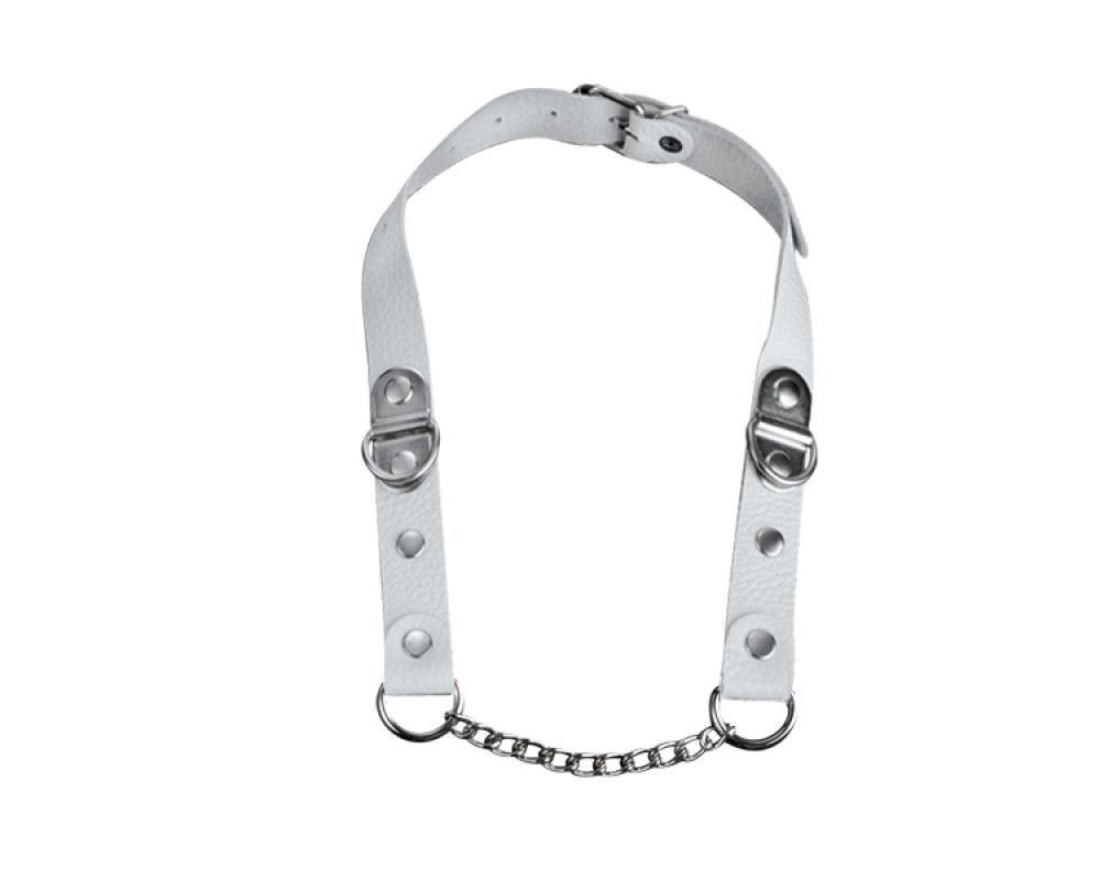 Белый кожаный кляп с цепью