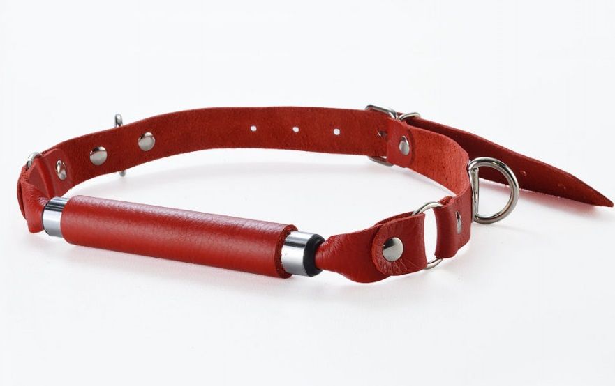 Кляп – трензель. Ремешки изготовлены из натуральной кожи. Металлический трензель обтянутый мягкой натуральной кожей, благодаря небольшому диаметру позволяет оставлять рот не слишком широко открытым. Размер универсальный.