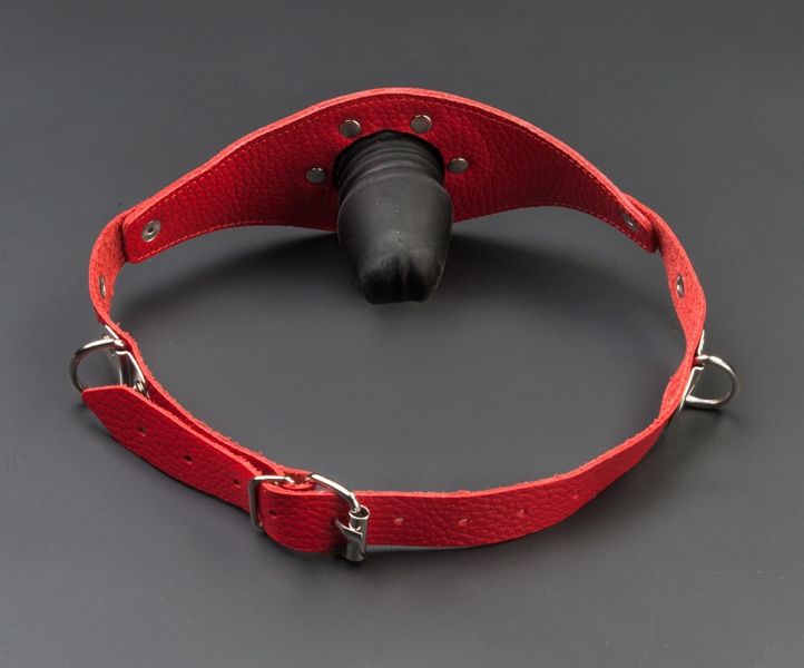 Основа кляпа изготовлена из натуральной кожи. Кляп в виде фаллоса изготовлен из натурального гипоаллергенного латекса. Размер универсальный.