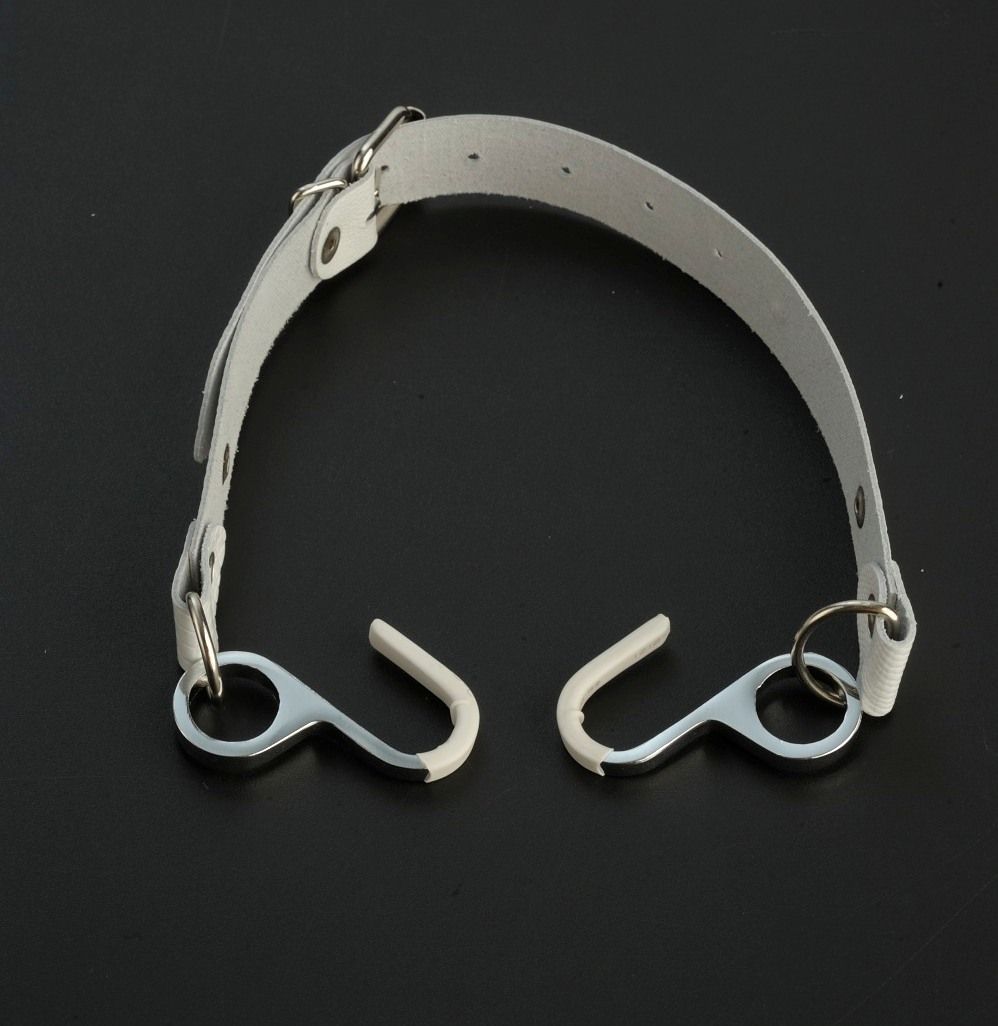 Кляп, который состоит из двух прорезиненных крючков на белом ремешке, способных широко растянуть рот партнеру для воплощения самых сокровенных фантазий. Ремешки удобно и легко регулируются под любой размер головы. Изготовлен из натуральной кожи и никелированной фурнитуры. Размер универсальный.