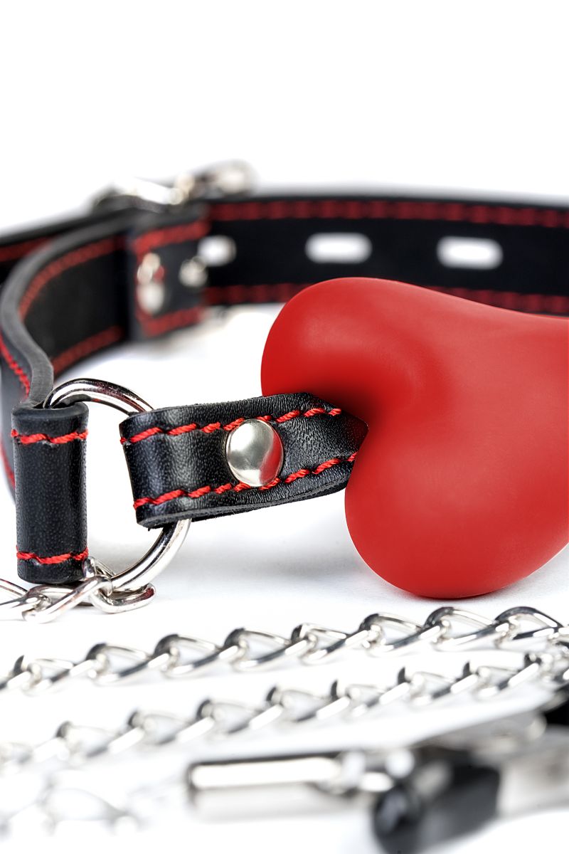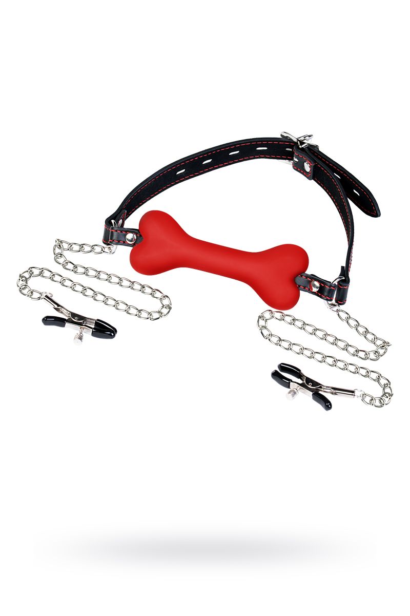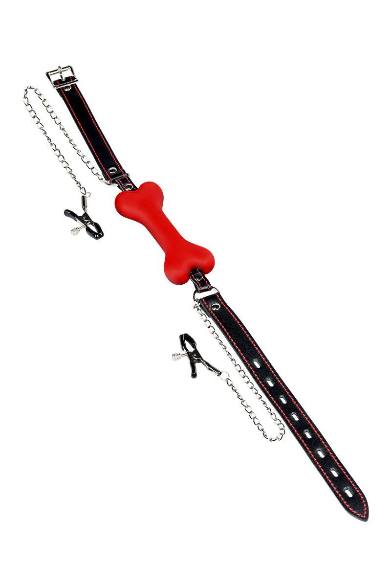 Силиконовый кляп-трензель на ремешке из PU-кожи лишает возможности разговаривать, при этом его комфортно прикусывать. Дополнительно стимулировать нижнего можно изменяя степень давления на соски зажимами-крокодилами.