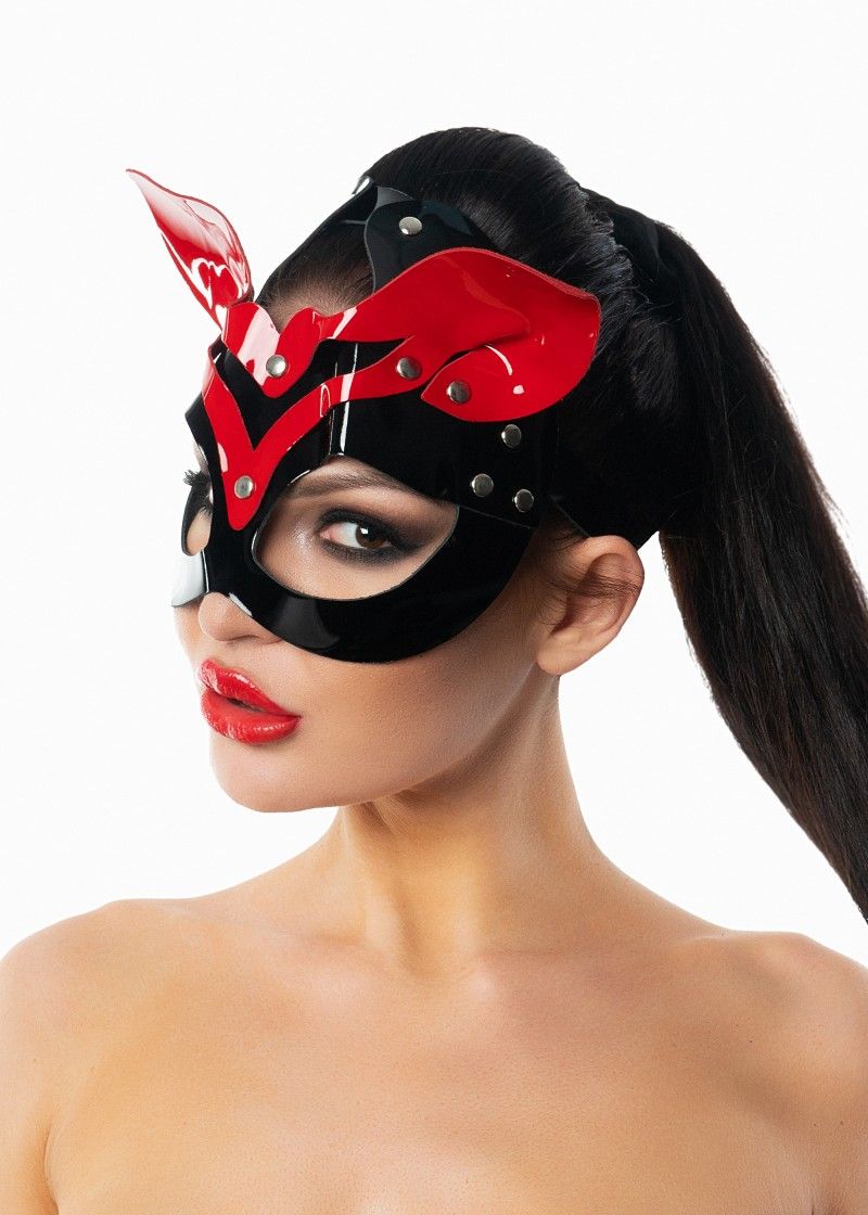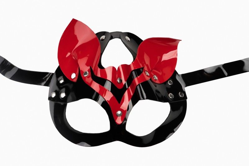 Маска кошки, выполненная из лакированной кожи, с металлической фурнитурой, сзади регулируется ремешками. Крупные вырезы для глаз обеспечат прекрасный обзор и комфортное прибывание в образе. Маска кошки из натуральной лаковой кожи с миндалевидными прорезями для глаз, украшенная металлическими заклёпками. Для максимального комфорта маска имеет бархатистую замшевую изнанку, обеспечивающую приятные тактильные ощущения при соприкосновении с кожей лица. Сзади регулируется ремешками. Крупные вырезы для глаз обеспечат прекрасный обзор и комфортное прибывание в образе. Прекрасно подойдет как для БДСМ сессий, так и для ролевых образов. Ширина - 24 см, высота - 18 см. Обхват - 66 см.