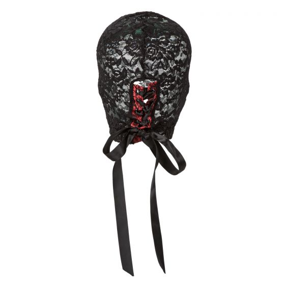 Маска-шлем (депривационная маска) Scandal Corset Lace Hood - аксессуар для ролевых игр, в том числе и в стиле БДСМ. Выполненная из кружева, она плотно облегает голову, но при этом прекрасно пропускает воздух и обеспечивает комфорт даже во время длительного использования. Помимо этого, она не полностью блокирует свет, позволяя, хоть и не четко, но видеть происходящее.
