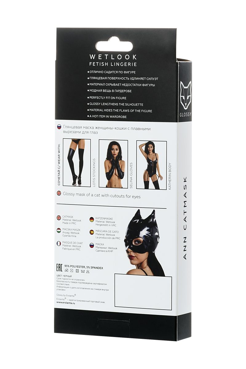 Встречайте новую, долгожданную и блестящую коллекцию белья из популярного материала wet-look – Glossy. Wet-look отлично садится по фигуре. Глянцевая поверхность визуально удлиняет силуэт. Плотный материал скроет мелкие недостатки фигуры. Модная вещь в сексуальном и базовом гардеробе. Глянцевая маска женщины-кошки с плавными вырезами для глаз - идеальное завершение знаменитого сексуального образа кинематографа. Легко тянется и принимает нужную форму.