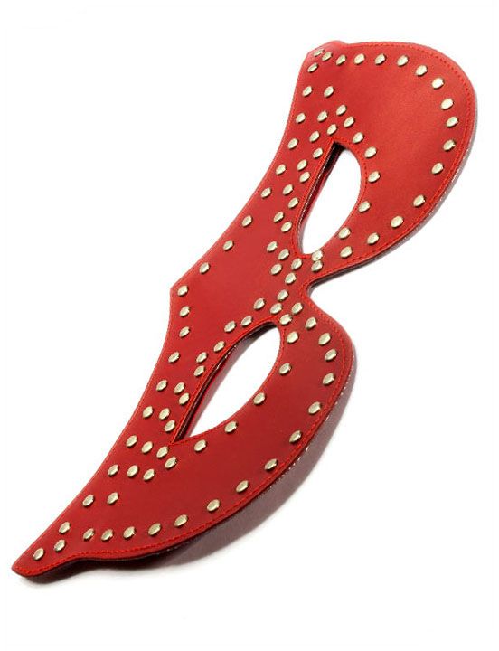 Красная маска из натуральной кожи с заклёпками Eroticon P3027R