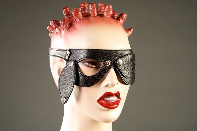 Очки ручной работы изготовлены из натуральной кожи.Очки имеют съемные шоры. Они плотно застегиваются с помощью ремешка с регулируемой пряжкой. Данная маска станет прекрасным дополнением вашего образа в стиле БДСМ. Ширина - 7 см.