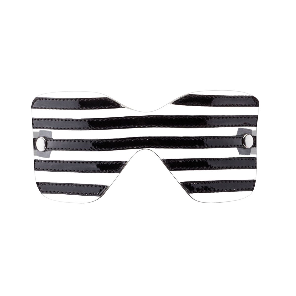 Маска на глаза, изготовлена из прозрачного ПВХ с черными лаковыми вставками. При помощи резинки удобно крепится на голове Максимальная ширина - 7 см.