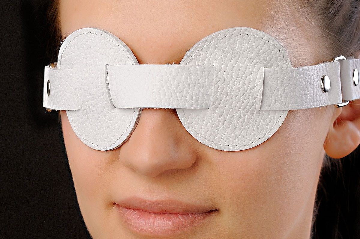 Маска изготовлена из натуральной кожи с велюровой подкладой. Размер универсальный.