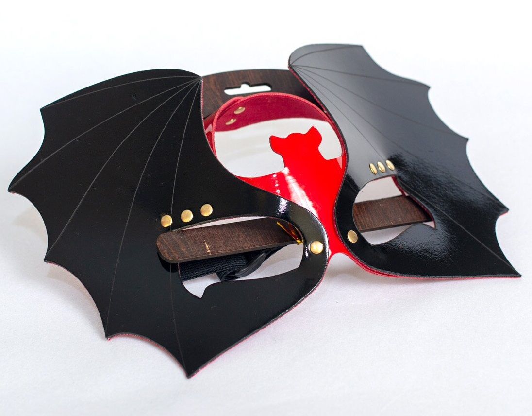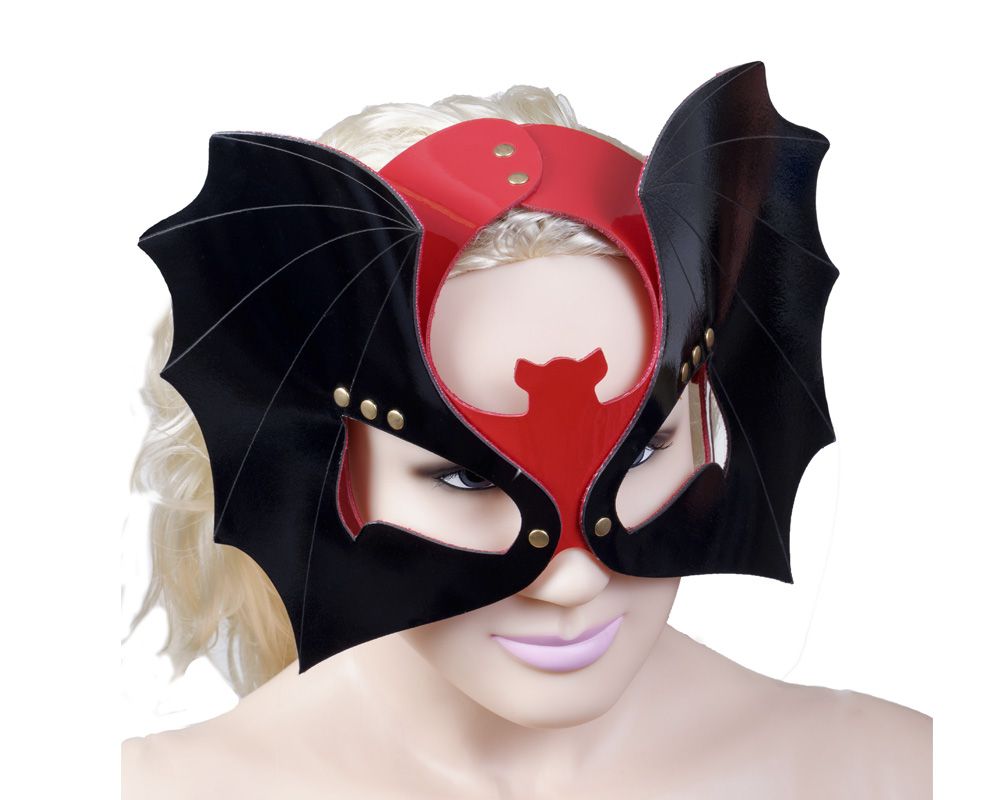 Черно-красная кожаная маска на глаза. Выполнена в форме летучей мыши.