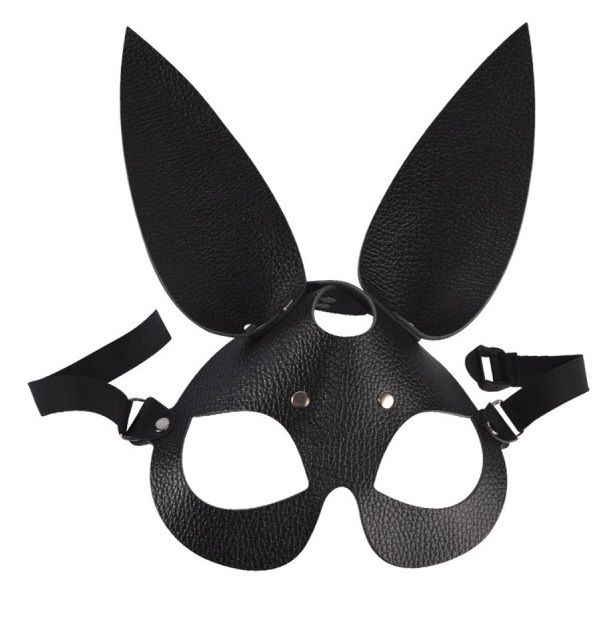 Маска изготовлена из натуральной кожи черного цвета. Маска легко одевается и имеет универсальный размер за счёт ремешка-резинки, который надёжно и комфортно фиксирует аксессуар на голове.