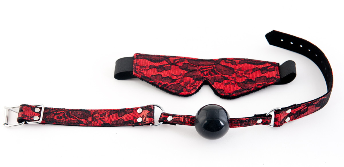Набор: маска и кляп. Изящное черное кружево на ярко - красном фоне. Более сексуального сочетания не существует. Больше ни слова и ни взгляда! Только полное подчинение!
