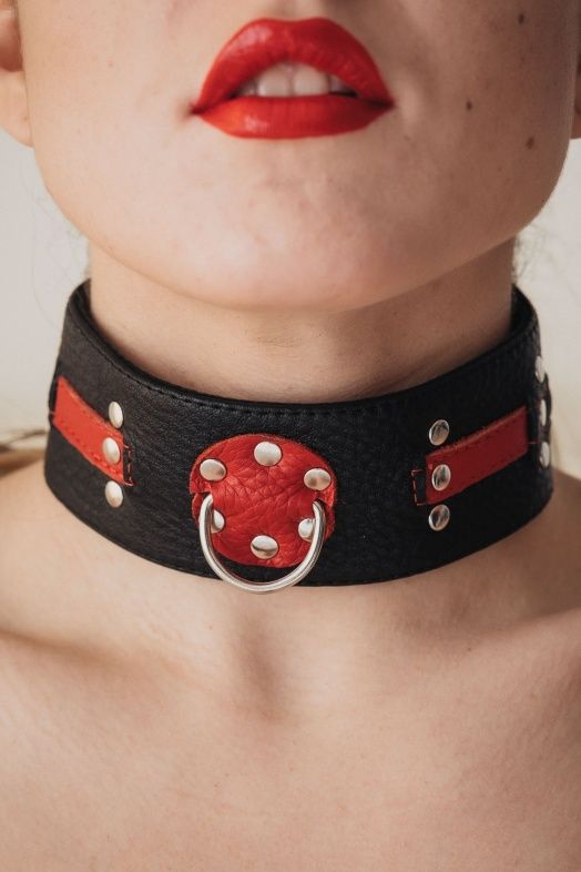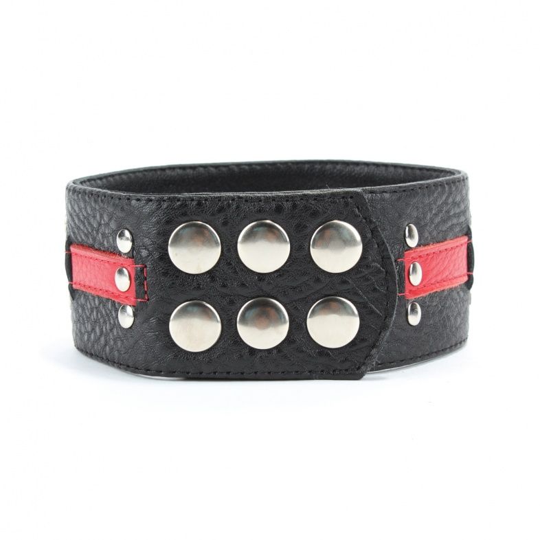 Чёрно-красный ошейник с клёпками.