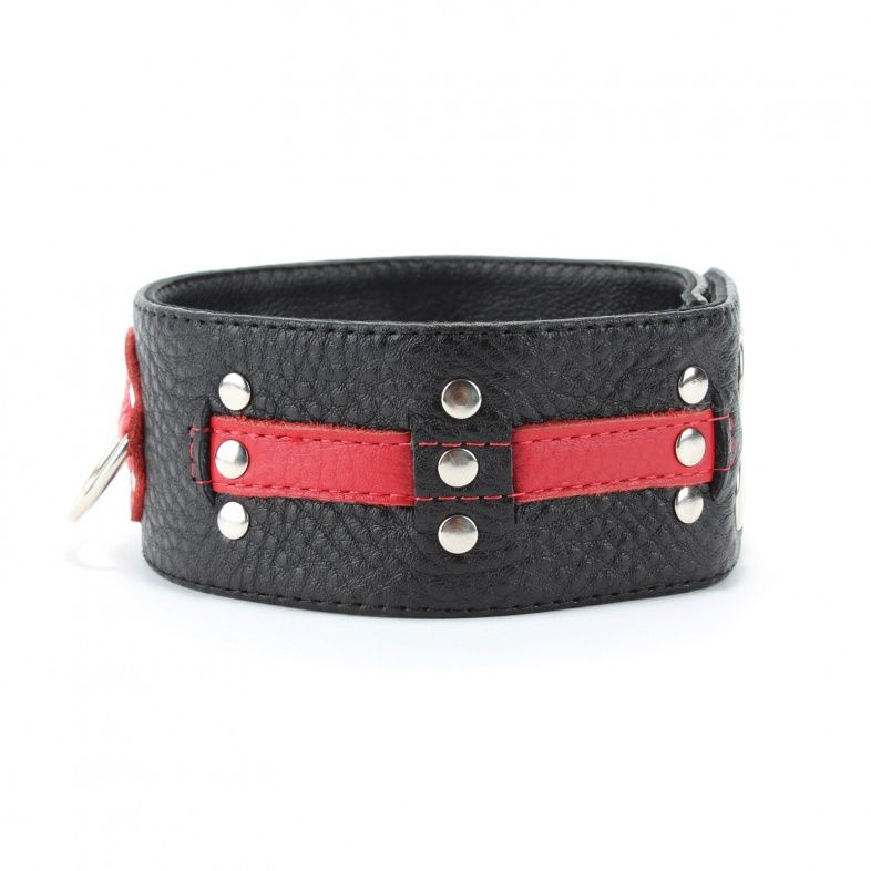 Чёрно-красный ошейник с клёпками БДСМ арсенал 55004