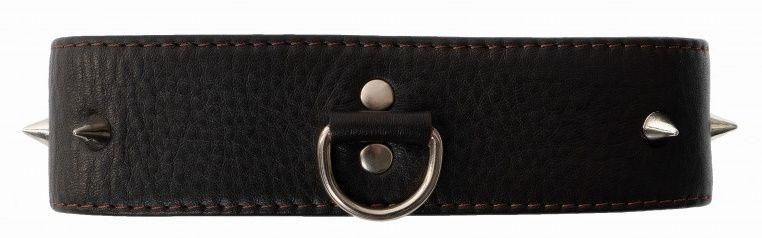 Ошейник с кольцом для подводка. Декорирован металлическими шипами и снабжен заклепками для регулировки объема.