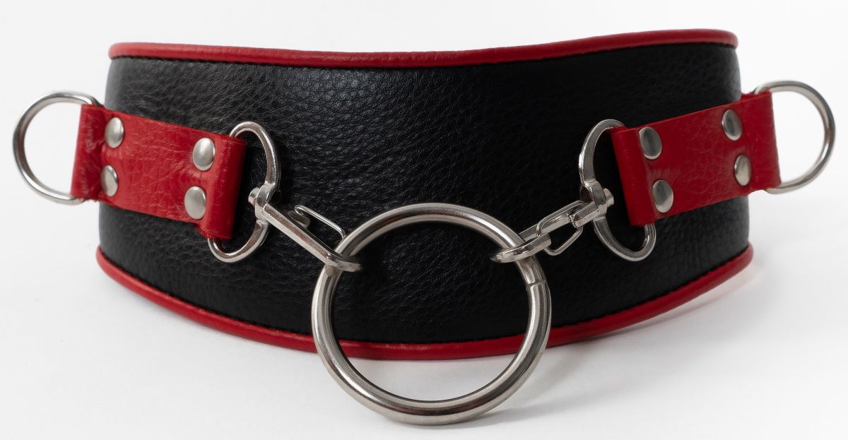 Чёрно-красный ошейник с колечками БДСМ арсенал 912-11 BX DD
