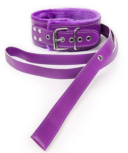 Фиолетовый ошейник на поводке с ручкой-петлей
