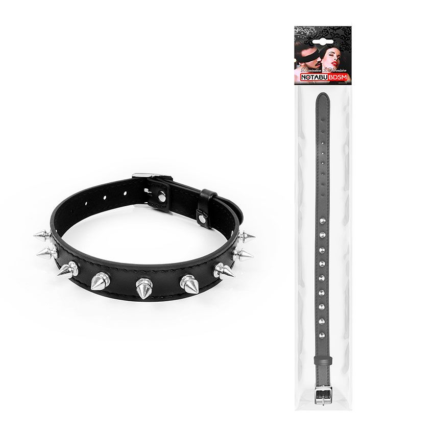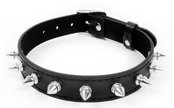 Чёрный ошейник с серебристыми шипами