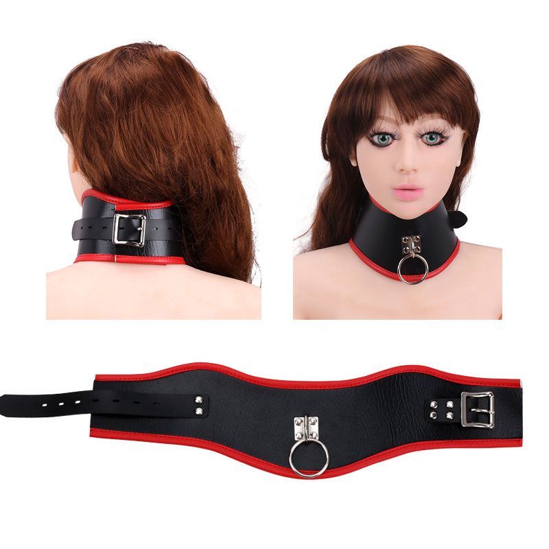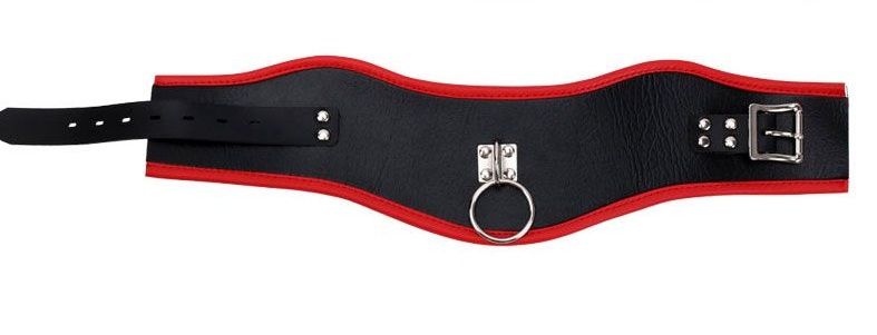 Широкий ошейник на регулируемой застежке с кольцом для поводка.
