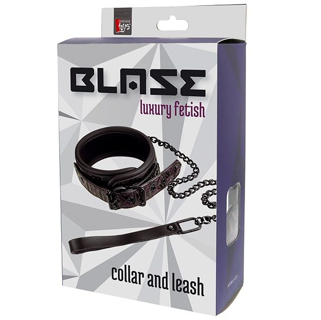 Фиолетово-чёрный ошейник с поводком Dream Toys BLAZE COLLAR AND LEASH PURPLE 21271
