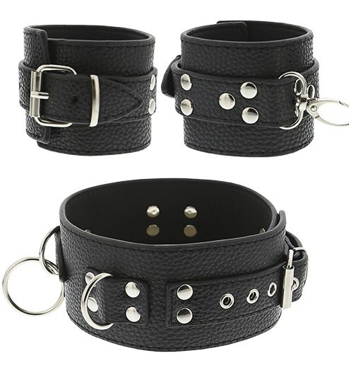 Чёрный ошейник с манжетами для рук