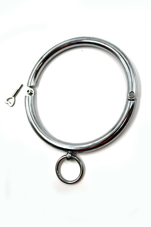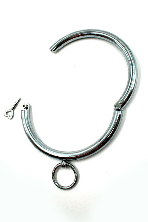 Ошейник металлический с кольцом для фиксации. 2 половины ошейника соединены болтами, в комплекте ключ для комфортного надевания и снятия аксессуара. Внутренний диаметр - 12 см. Диаметр кольца фиксации - 3,2 см.