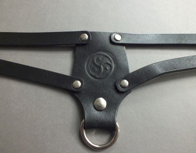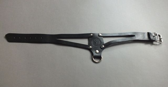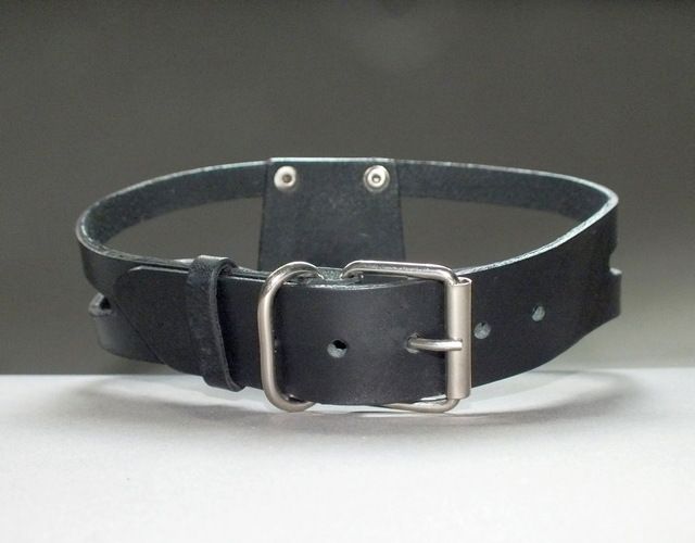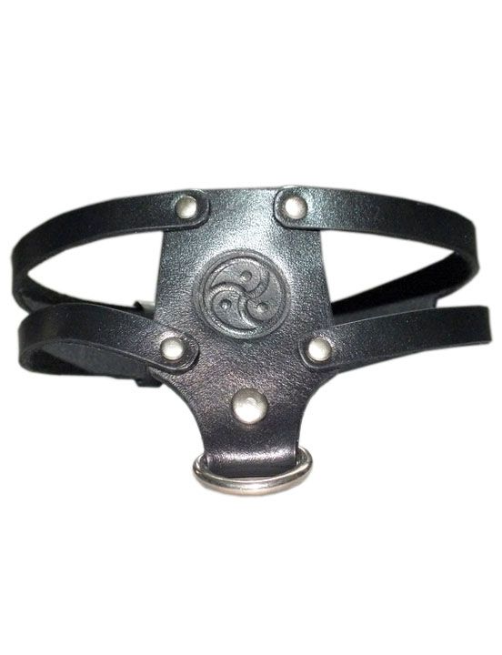 Ошейник из натуральной кожи чёрного цвета. Украшен ошейник полукольцом и клише «Трискель». Застёгивается на застёжку-пряжку, что позволяет регулировать размер. Ширина центральной части (до кольца) - 7 см.