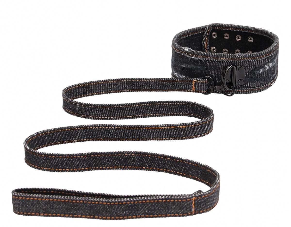 Широкий ошейник с поводком With Leash Roughend Denim Style - атрибут подчинения для эротических ролевых игр и практик БДСМ. Он выполнен из джинсовой ткани, которая обеспечивает нежное прикосновение и не раздражает даже чувствительную кожу. На внешней части внизу ошейника имеется небольшое D-образное колечко, за которое можно зацепить входящий в комплект поводок в виде зачерненной металлической цепочки с фиксацией с помощью кожаной петли на запястье. Ошейник используется как символ подчинения, признания отношений и полного доверия. Оденьте ошейник на шею и с помощью пряжки зафиксируйте ремень. Не следует затягивать ошейник слишком туго. Длина поводка - 56 см.