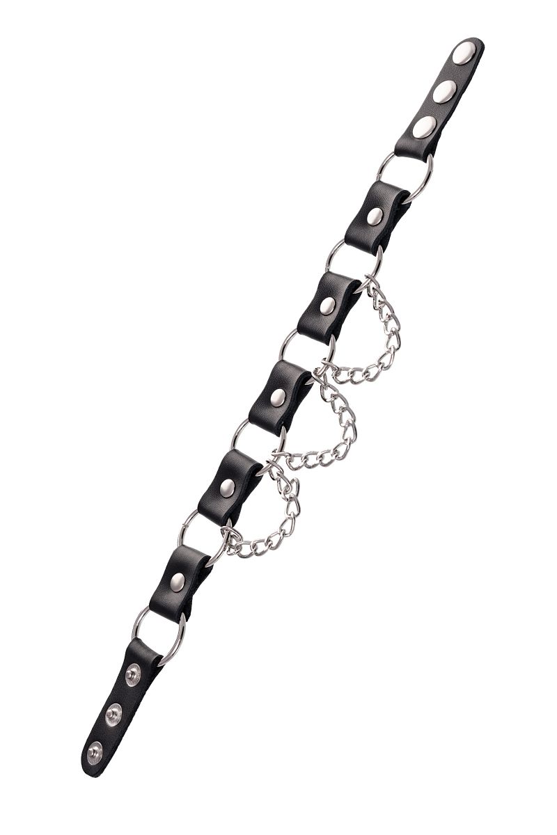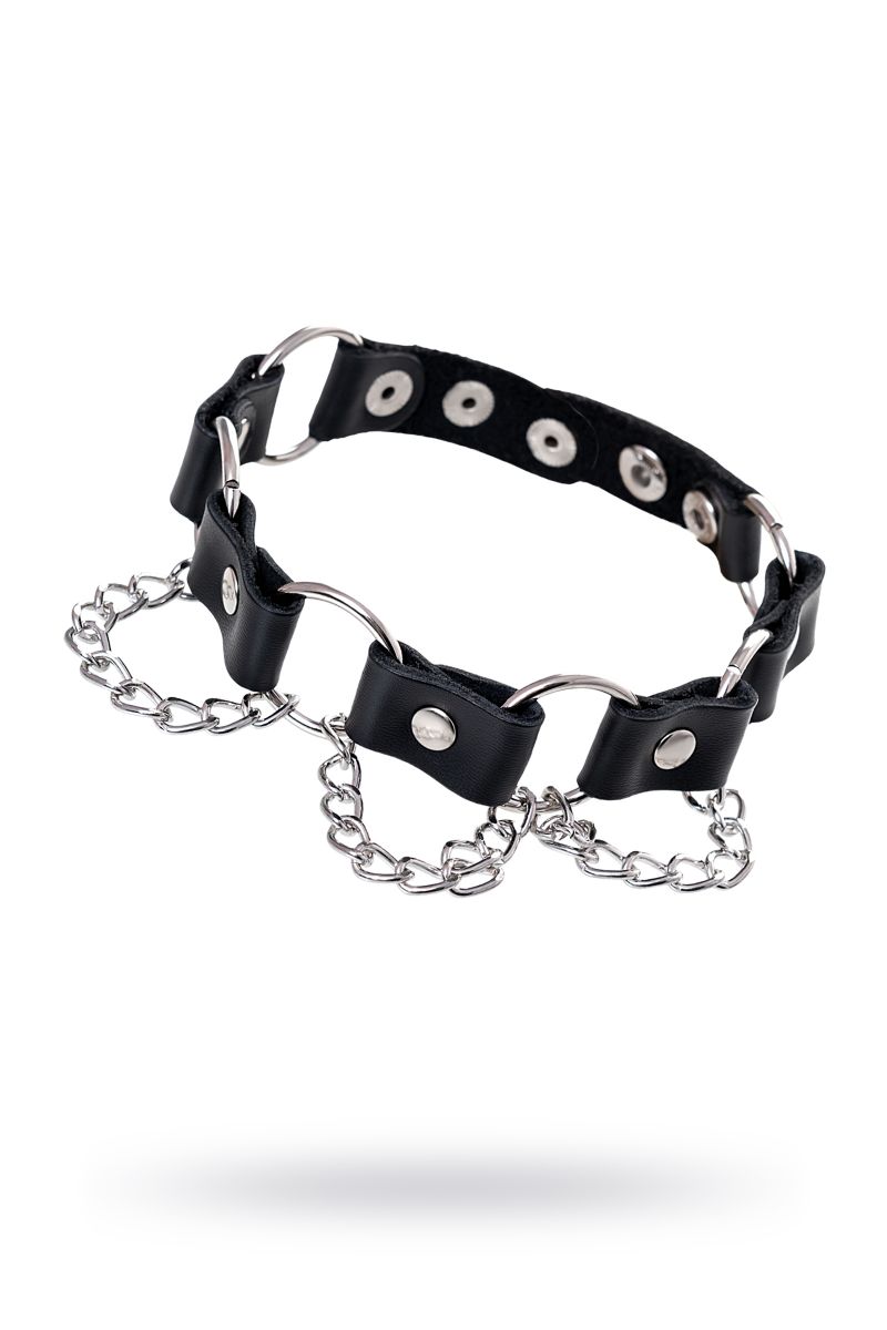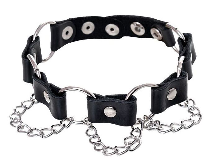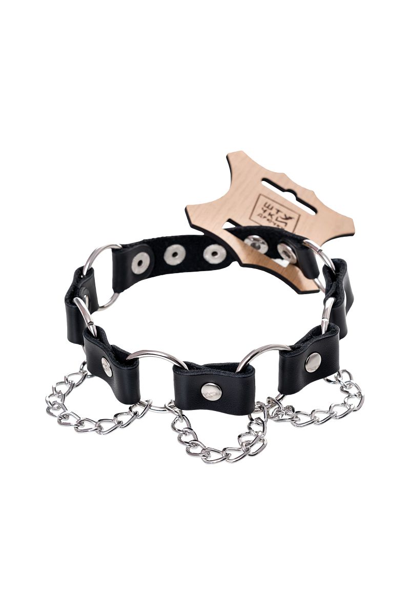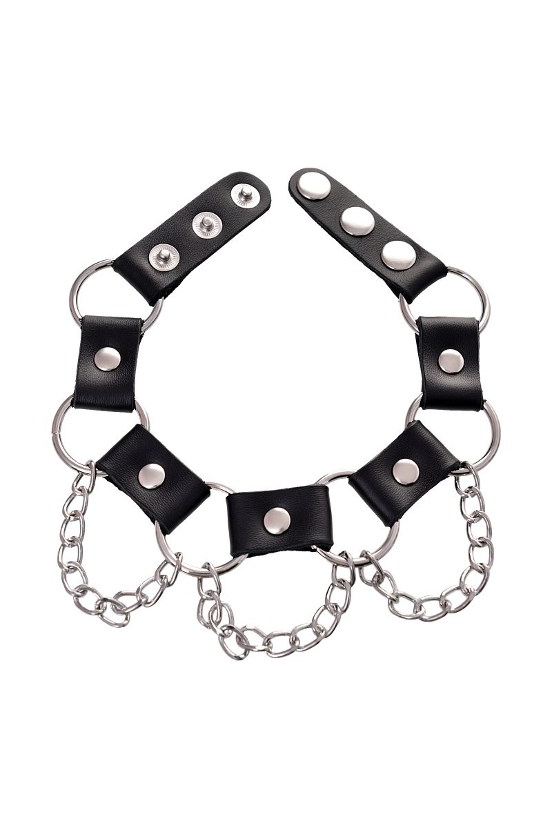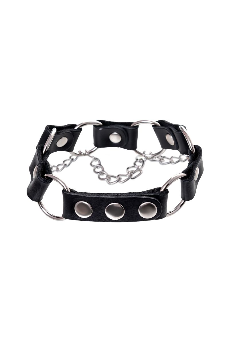Простота, стиль и удобство – то, что отличает этот БДСМ-аксессуар. Ошейник выполнен из натуральной кожи и дополнен элементами из металла. Фиксация на шее за счет кнопок.