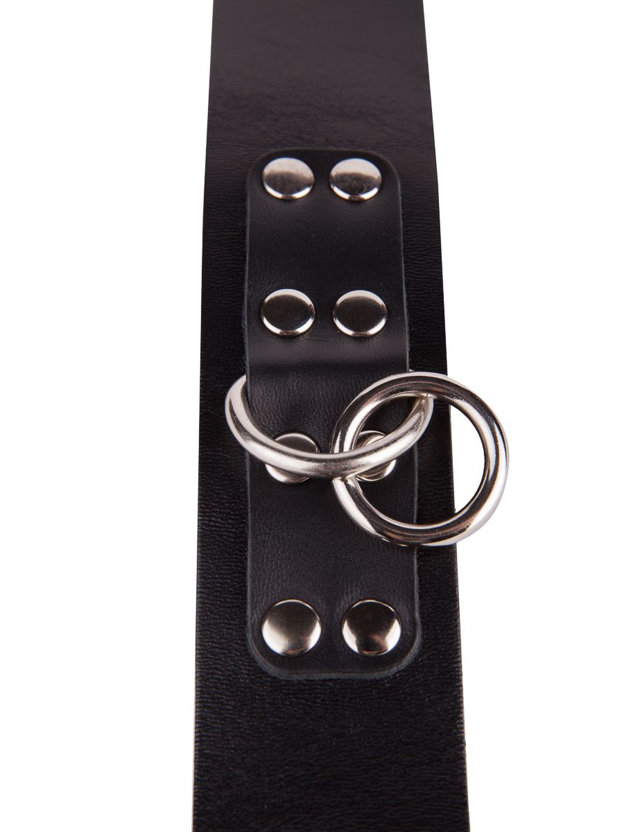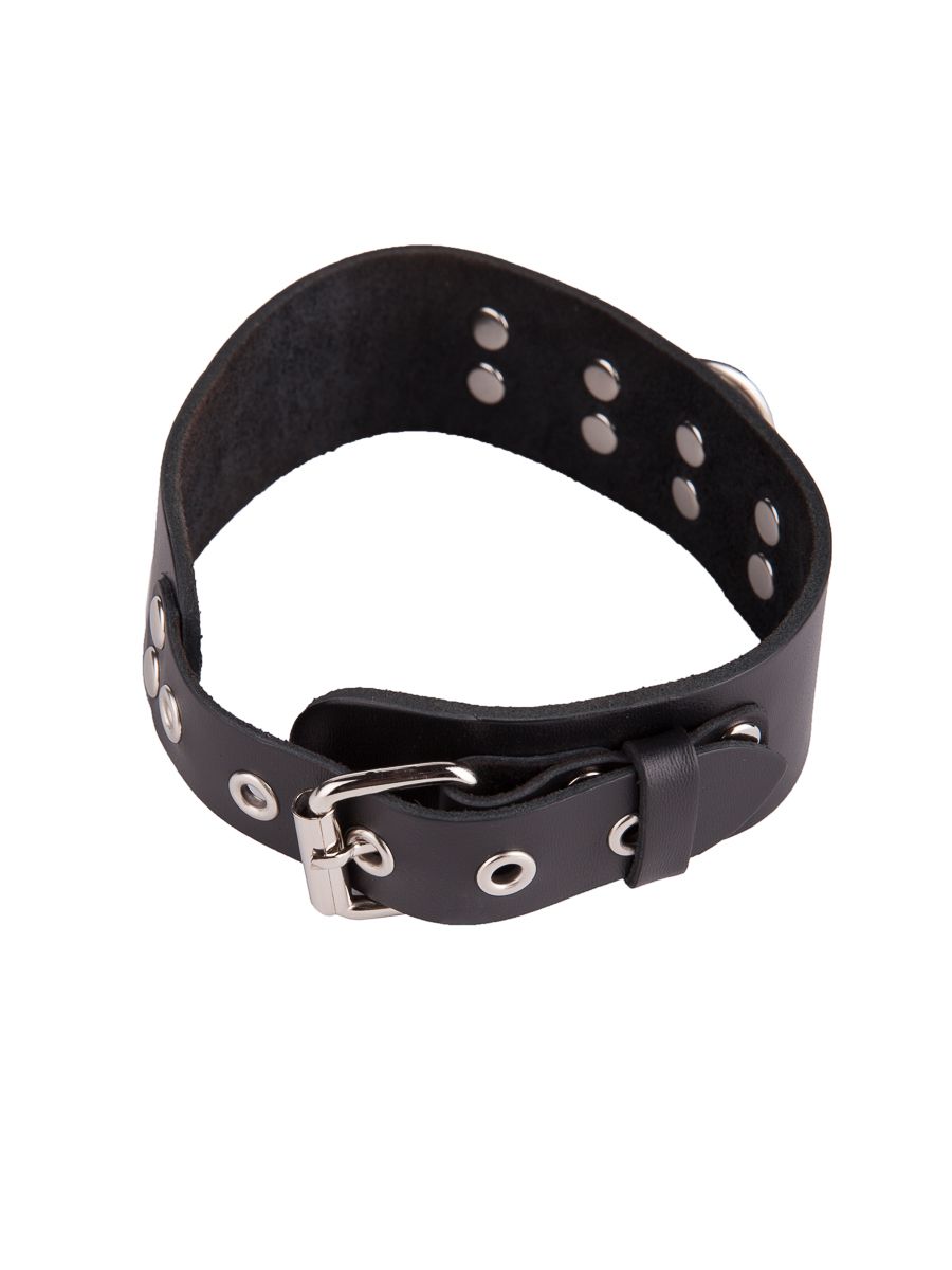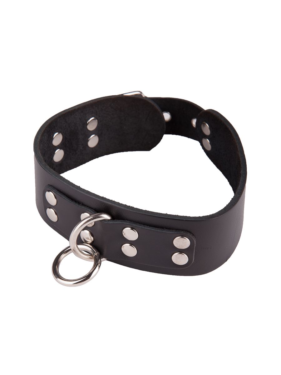 Чёрный кожаный ошейник с кольцом и клепками