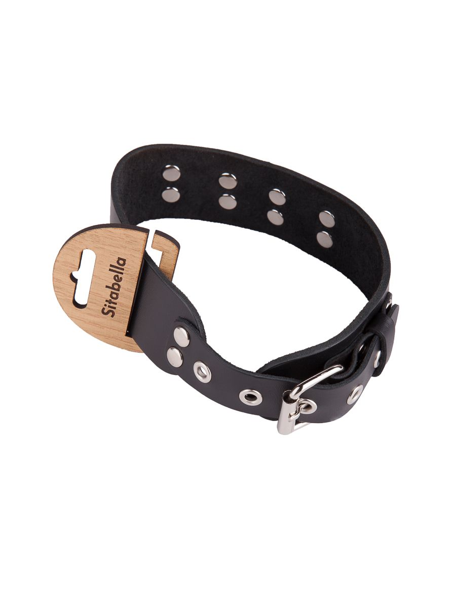 Чёрный кожаный ошейник с кольцом и клепками Sitabella 3195-1