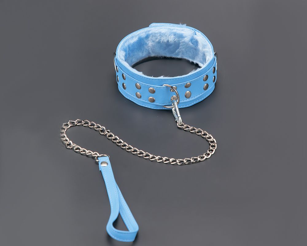 Изготовлен из искусственной кожи. С внутренней стороны подклада из мягкого меха. При изготовлении использована фурнитура с никелевым покрытием. Металлическая цепочка (поводок), с карабином на конце, поможет вам с лёгкостью управлять своим партнёром. Размер универсальный.
