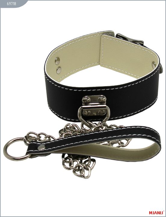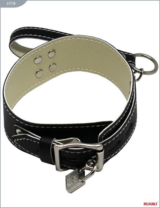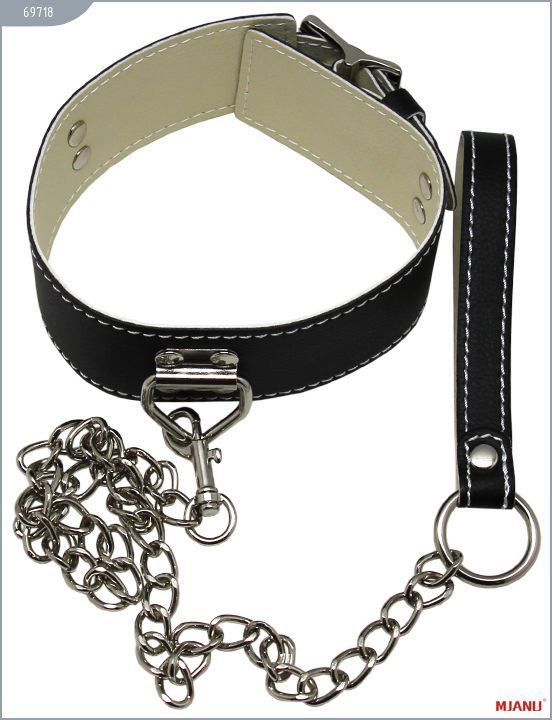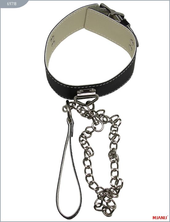 Ошейники Mjanu — высококачественные изделия с современной фурнитурой, аккуратными креплениями и отличной контрастной белой строчкой. Изготавливаются из натуральной кожи c PU покрытием, которая сохраняет свойство натуральной кожи пропускать воздух и устойчивость к деформации, но в отличии от натуральной кожи имеет более привлекательный внешний вид. Поводок крепится к кольцу ошейника карабином и оснащён кожаной петлёй для руки. Размер ошейника регулируется при помощи ремешка и надёжно фиксируется замком. Длина с ремешком - 48 см., ширина - 4,5 см. Длина поводка - 62 см., длина его ручки-петли - 12 см. диаметр 12,7