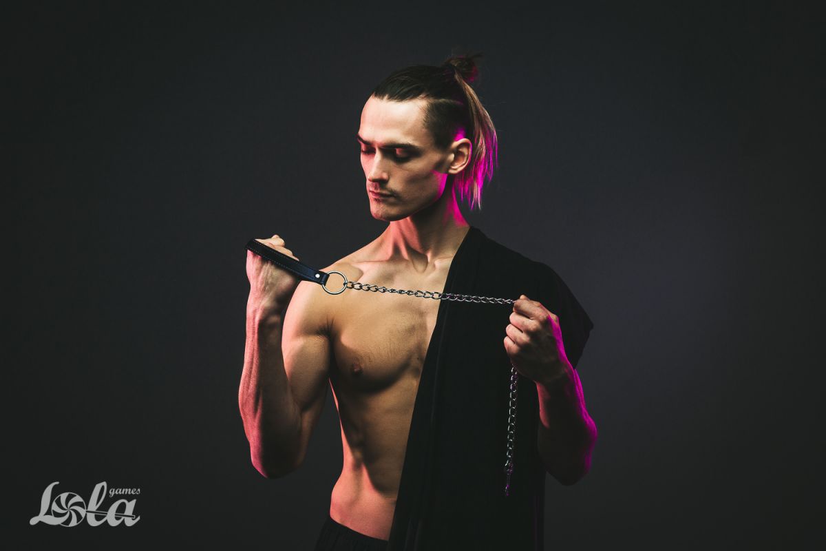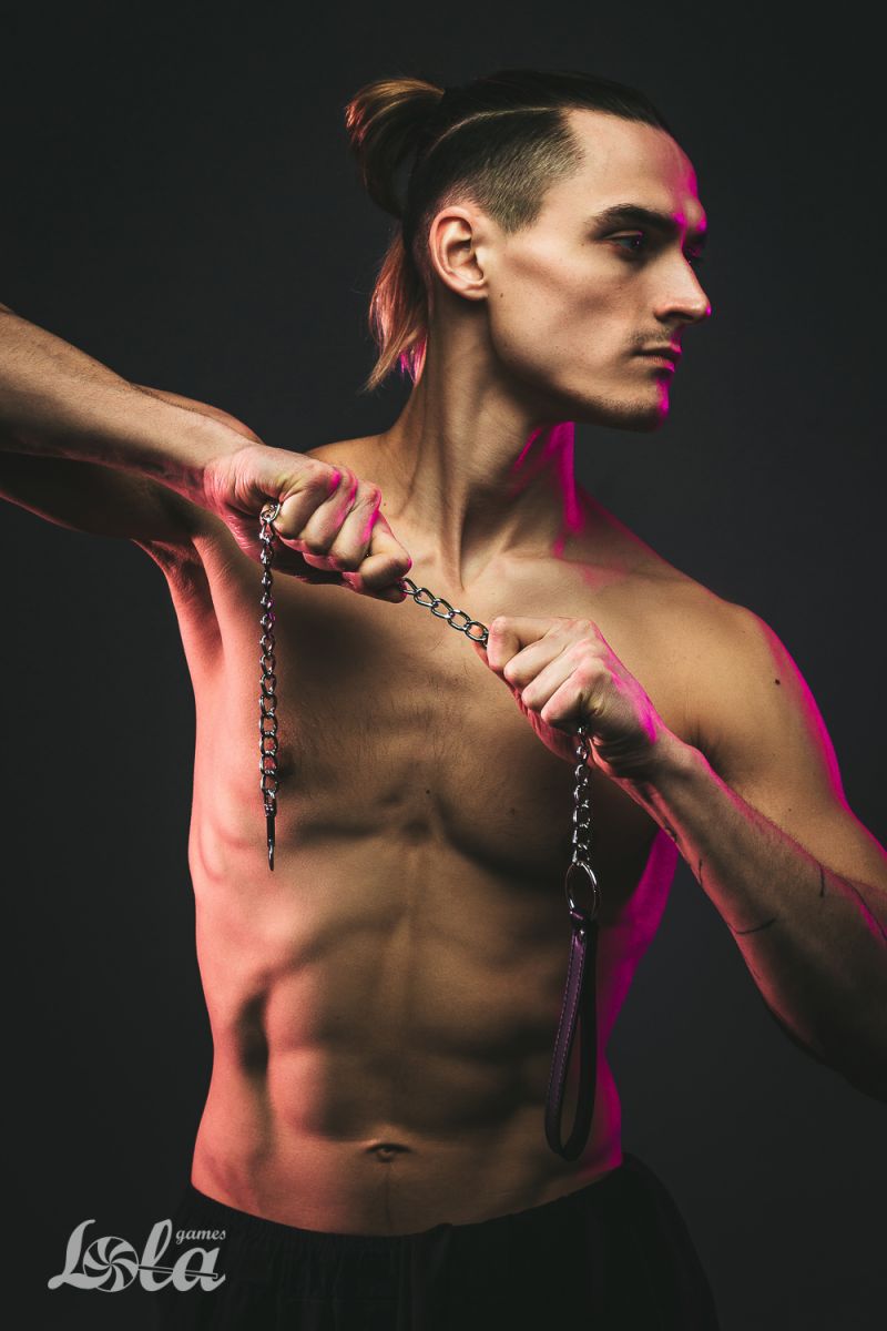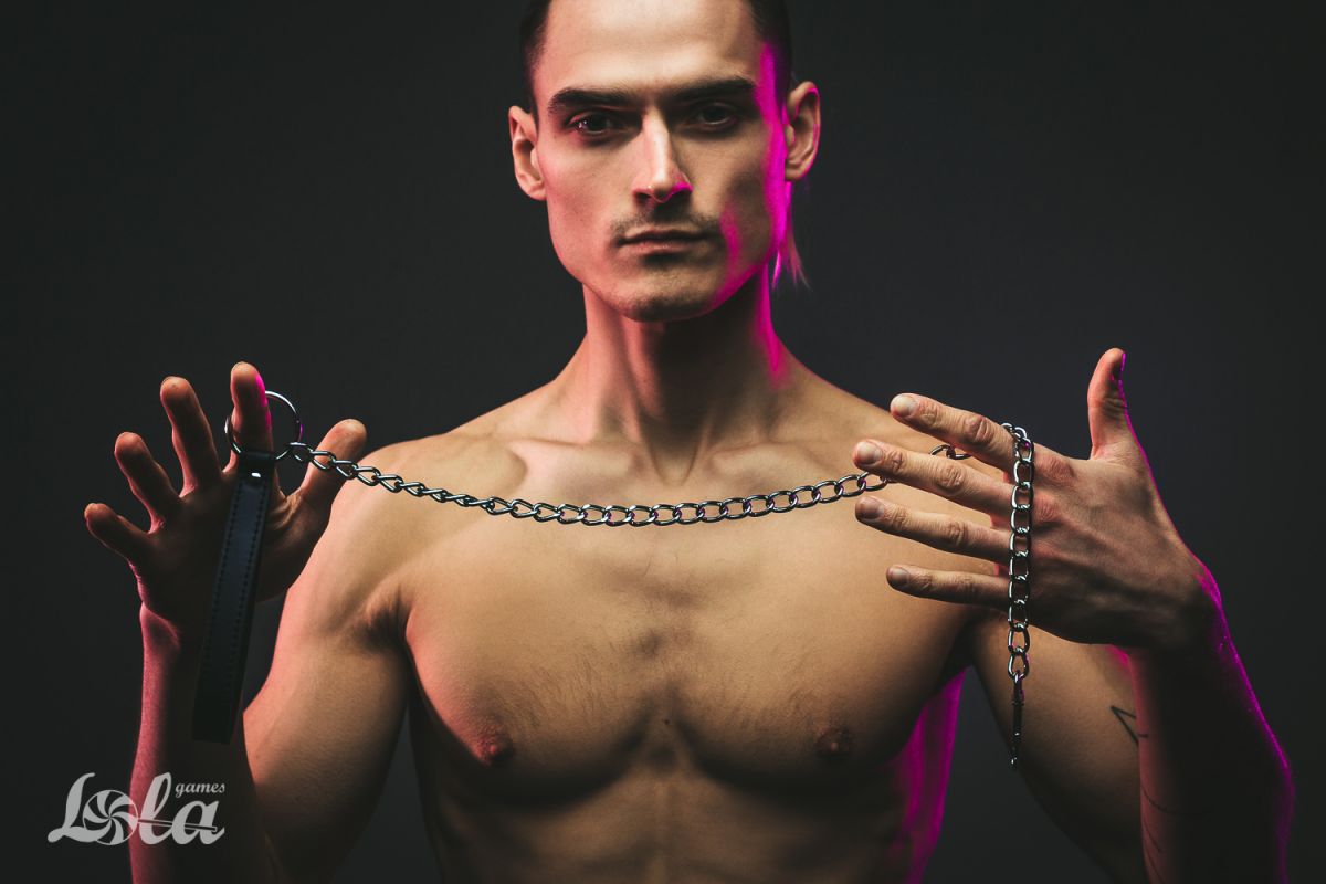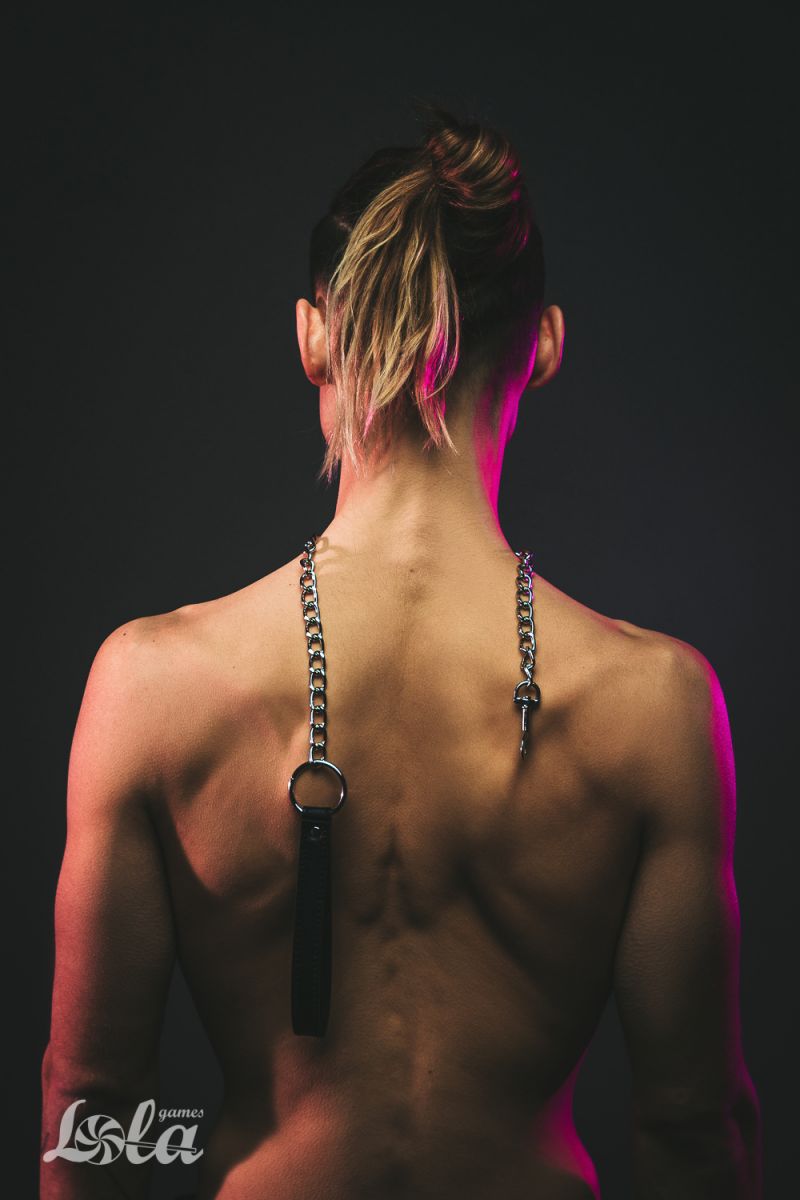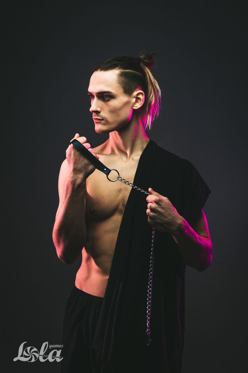 Металлический поводок для ошейника с черной ручкой. Раб должен знать свое место. Он должен сидеть на привязи, как домашний питомец. Должен уметь выполнять команды. А чтобы так все и было нужен хороший ошейник. Так что раб будет на привязи и всегда можно дернуть поводок, чтобы питомец прильнул к вашим ногам.
