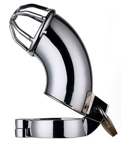Разнообразьте свою сексуальную жизнь этим великолепным серебристым поясом верности! Выполненный из высококачественной стали аксессуар фиксируется в области основания яичек при помощи кольца, а сама сбруя надевается на пенис в спокойном состоянии, вся конструкция застегивается на маленький замочек.