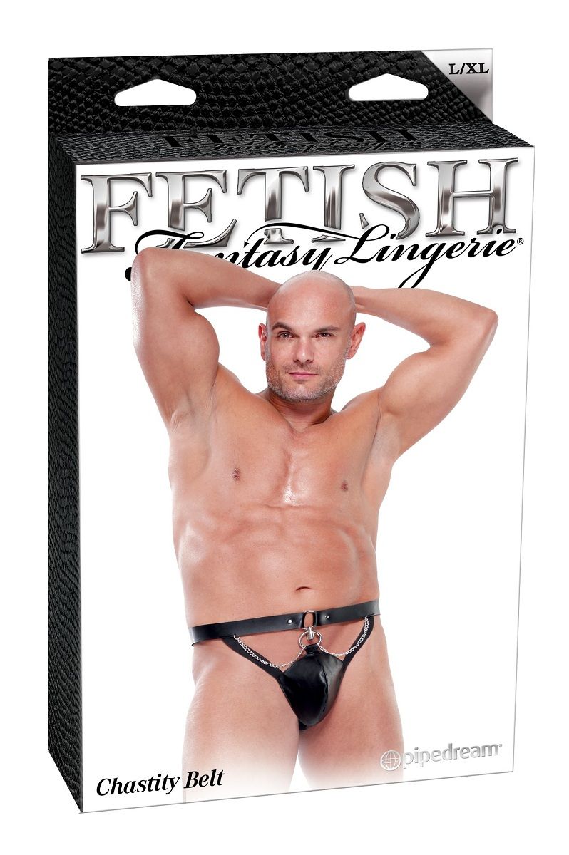 Стринги - пояс верности с виниловыми и металлическими вставками, с двумя замочками и комплектом ключей.