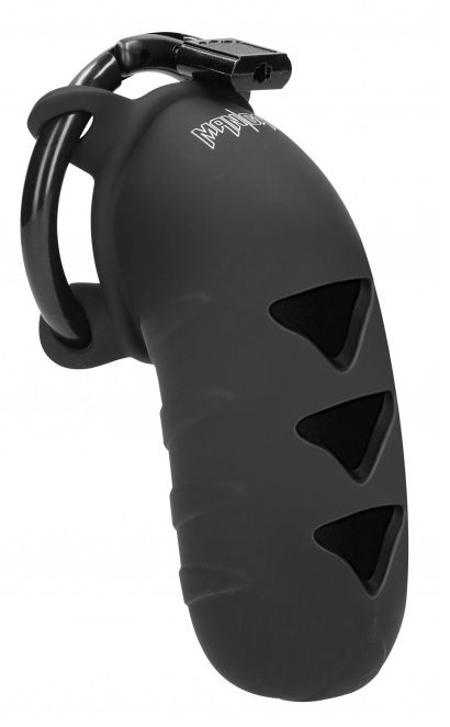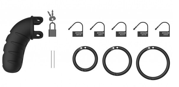 Cock Cage Model 08 Chastity - 4.2 – специализированное приспособление для мужчин, предназначенное для предотвращения эрекции, полового акта или мастурбации. В комплект входит железный замок и тонкая гибкая лента высокой прочности. Благодаря легкому, прочному и гипоаллергенному материалу пояс идеально подходит для долговременного ношения. Изделие состоит из нескольких разборных частей: клетки, кольца и штифтов, которые идеально сочетаются друг с другом. В комплекте к поясу идет 3 кольца разных диаметров для разных размеров и предпочтений. Просто выберете подходящий размер кольца, соедините его тремя штифтами, оденьте на средний штифт специальную втулку и соедините с клеткой. На центральном штифте есть специальное отверстие для замка. Выберете один из замков и зафиксируйте пояс. Фиксация тонкой гибкой лентой высокой прочности гарантирует, что металлоискатели на пояс не среагируют. Для поддержания надлежащей гигиены устройство снабжено вентиляционными отверстиями и отверстием для мочеиспускания. Диаметр колец - 4, 5, 6 см.