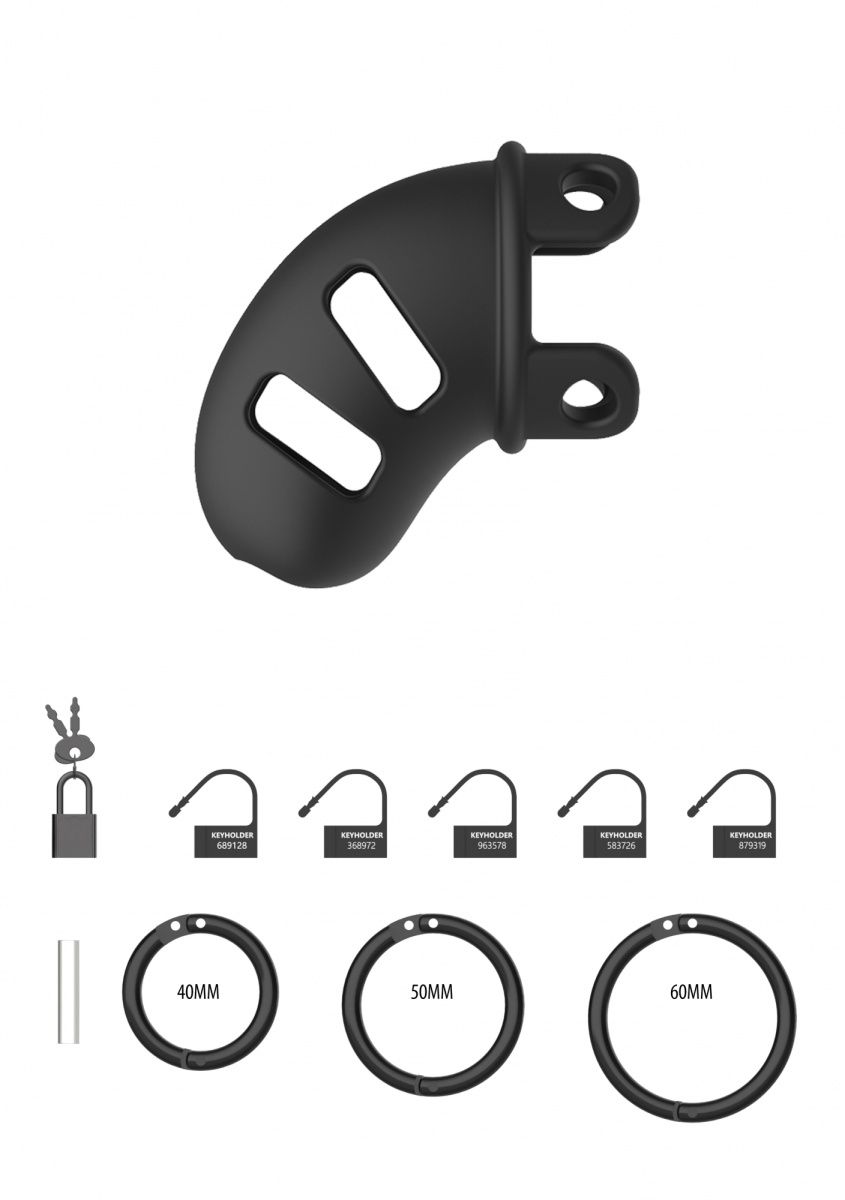 Cock Cage Model 14 Chastity 2.5 – специализированное приспособление для мужчин, предназначенное для предотвращения эрекции, полового акта или мастурбации. Благодаря легкому, прочному и гипоаллергенному материалу пояс идеально подходит для долговременного ношения. Изделие состоит из нескольких разборных частей: клетки, кольца и штифтов, которые идеально сочетаются друг с другом. В комплекте к поясу идет 4 кольца разных диаметров для разных размеров и предпочтений. Просто выберете подходящий размер кольца, соедините его тремя штифтами, оденьте на средний штифт специальную втулку и соедините с клеткой. На центральном штифте есть специальное отверстие для замка. Выберете один из замков и зафиксируйте пояс. Фиксация тонкой гибкой лентой высокой прочности гарантирует, что металлоискатели на пояс не среагируют. Для поддержания надлежащей гигиены устройство снабжено вентиляционными отверстиями и отверстием для мочеиспускания. В комплекте: железный замок и тонкая гибкая лента высокой прочности, клетка, 4 кольца, 4 штифта.