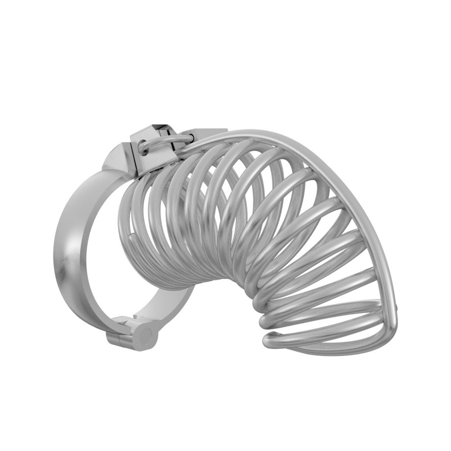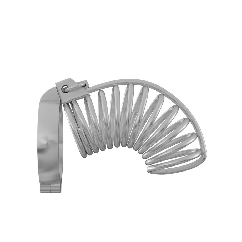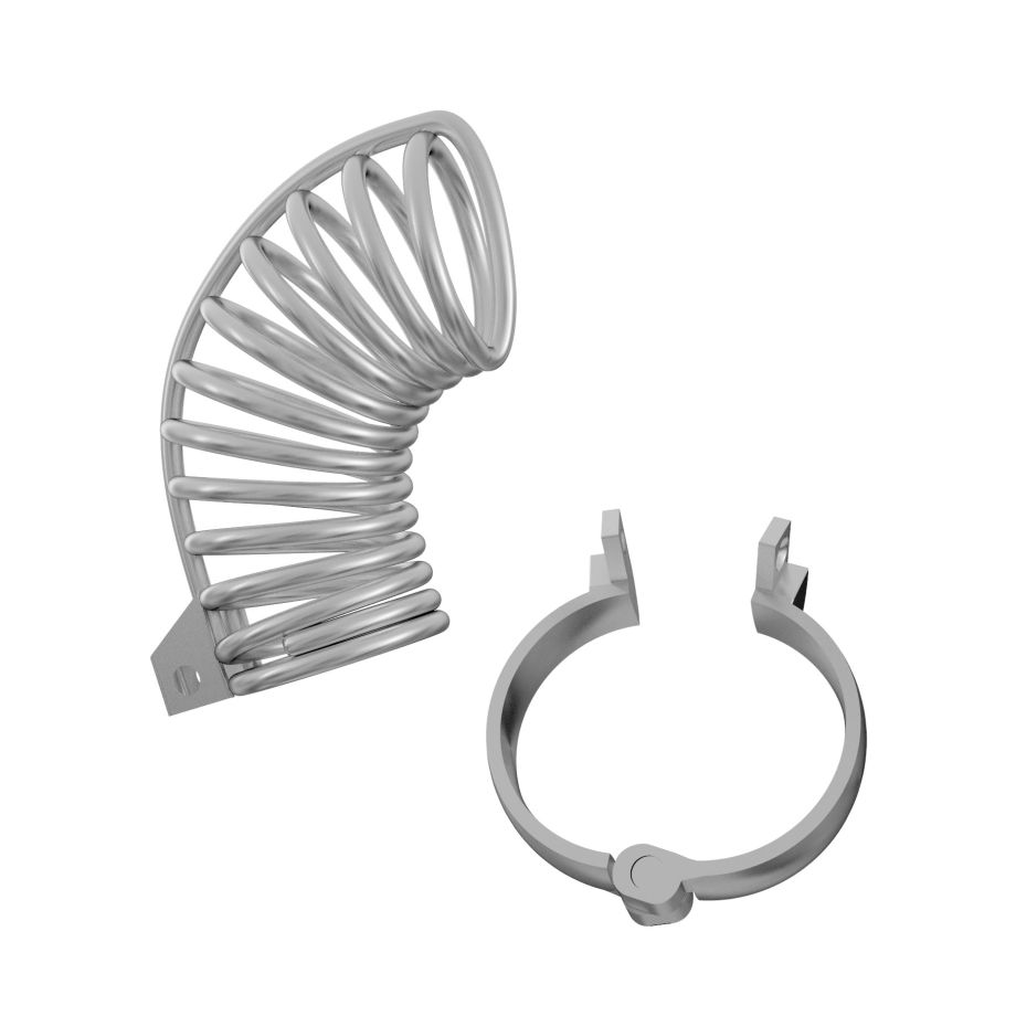 Надежно выполненный мужской пояс верности, препятствующий эрекции. Предназначен для сессионного ношения. Позволяет совершать гигиенические процедуры. Массивный и эффектный, используется в ролевых играх, эротических забавах и БДСМ-практиках. Сбруя в виде колец фиксируется в области основания яичек при помощи съемного раздвижного обруча. Небольшой замок и ключ в комплекте. Рабочая длина - 8 см. Внутренний диаметр корпуса - 5 см.