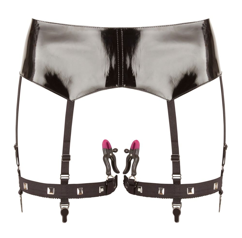 Сбруя на бедра с зажимами для половых губ Suspender Belt with Clamps.
