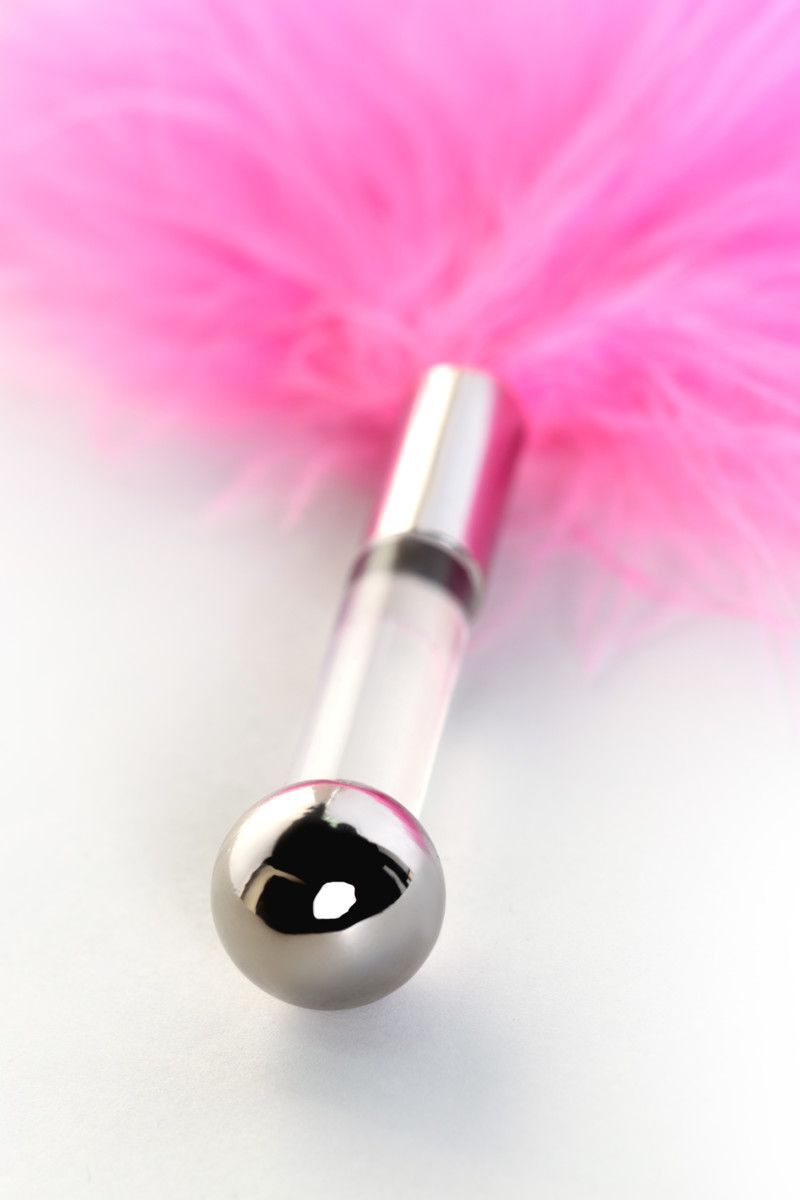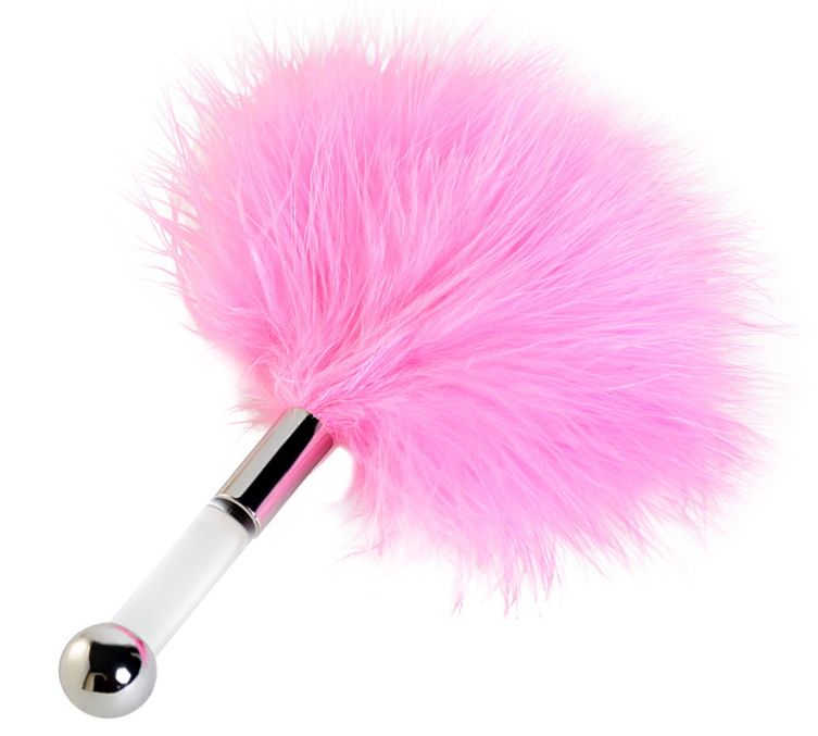 Розовая пуховая щекоталка.
