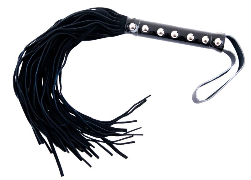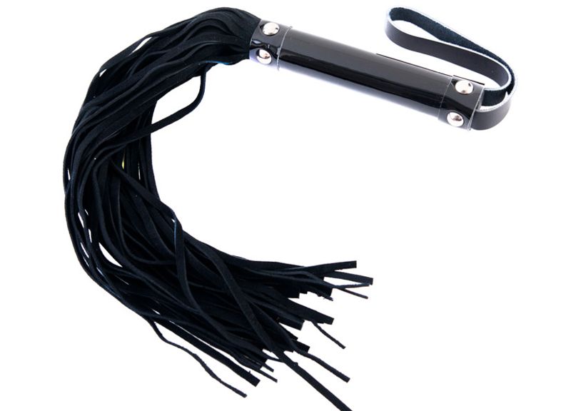 Стильный флоггер с 40 замшевыми хвостами и и жесткой ручкой, отделанной лакированной кожей и блестящими заклепками. Удобства добавляет кожаная петля для кисти. Достаточно мягкое воздействие замшевых хвостов идеально подходит для разогрева и для легких игр. Длина хвостов - 33 см. Длина ручки - 16 см.